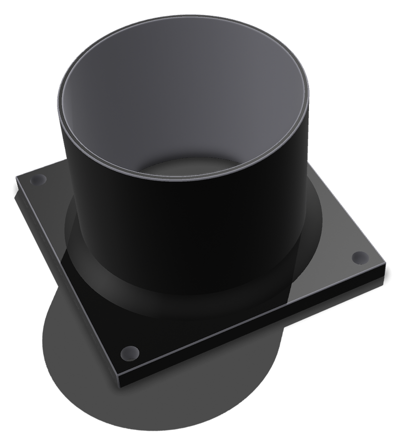 How to install the adapter: De-install the cover plate of the OT-2. Drill a 80mm thick hole in the cover plate of the OT-2 (e.g. at the position of the gantry). Screw the adapter on using stainless steel carriage bolts, install the cover plate again and connect it to the volatile chemical venting system using aluminum flex tubing.